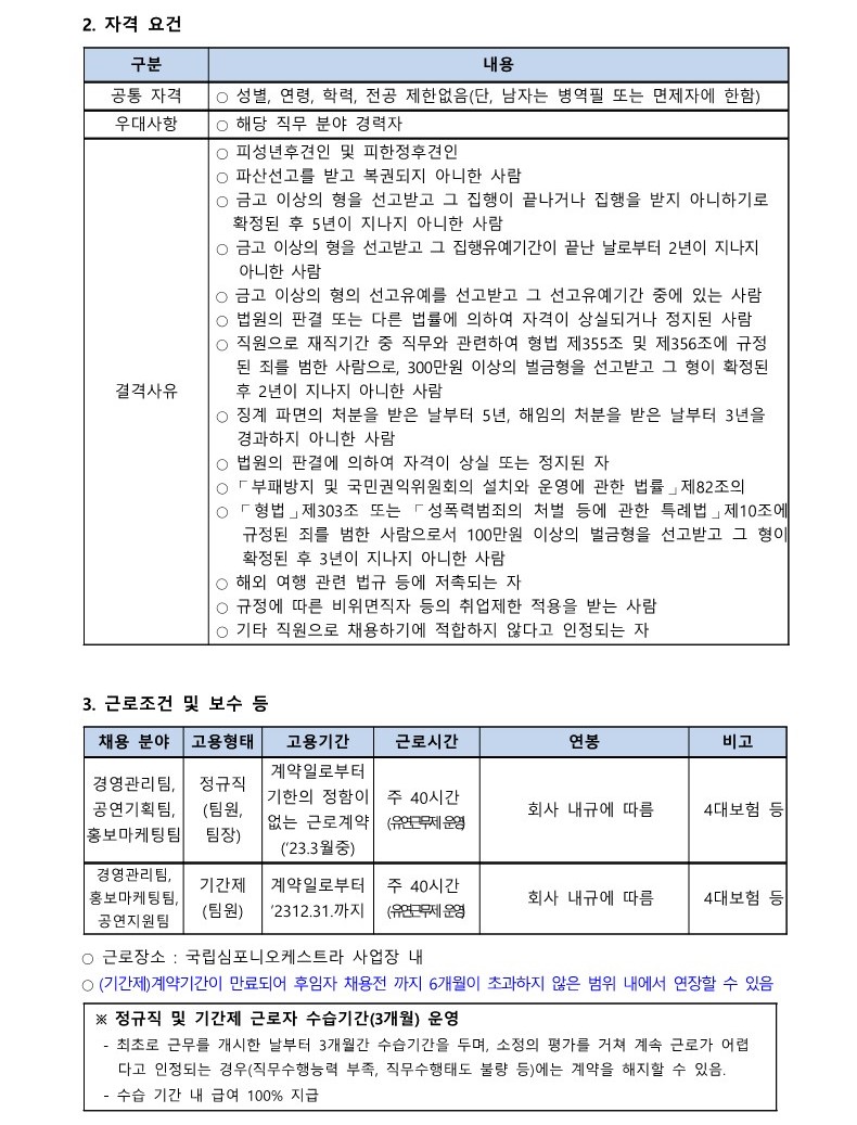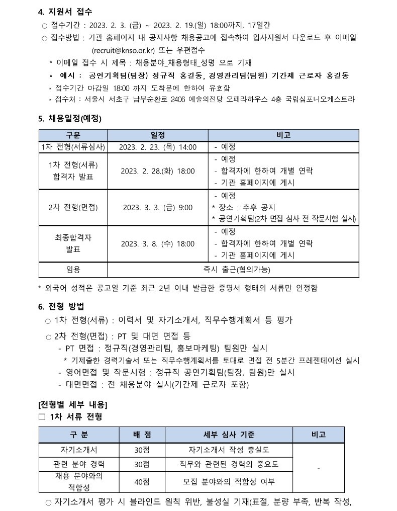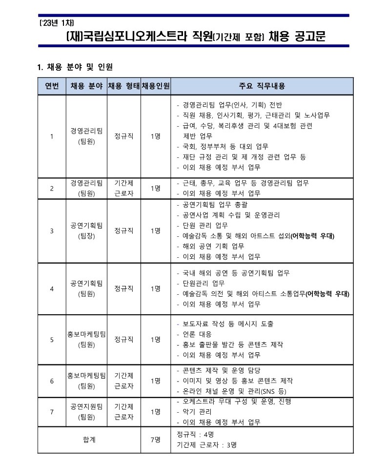 (재)국립심포니오케스트라 직원(기간제 포함) 채용 재공고문