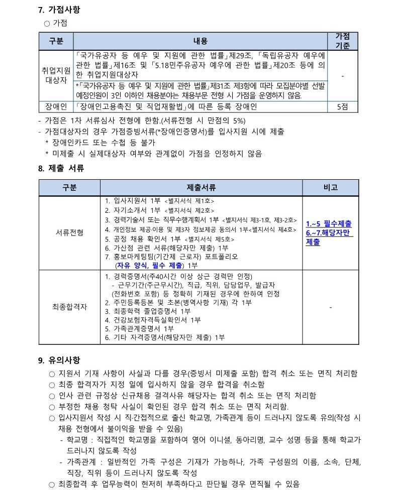 1. 채용 분야 및 인원 내 연번 3, 4번 주요 직무내용 중